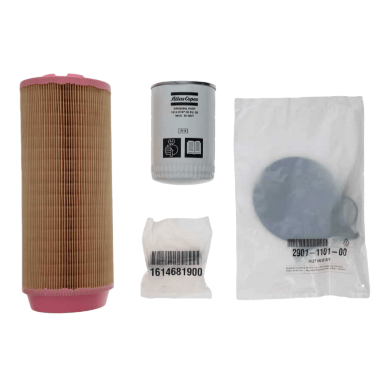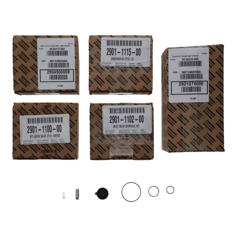 Atlas Copco 2901112100, Komplet za vzdrževanje zračnega kompresorja je standardizirana kombinacija rezervnih delov, zasnovana za običajne scenarije vzdrževanja. Ključne komponente, potrebne za vzdrževanje, združuje v en komplet orodij. Ta integrirana zasnova vzdrževalnemu osebju odpravlja težave pri ločenem iskanju in ujemanju delov. Zlasti za kompleksno opremo, kot so vijačni zračni kompresorji in zračni kompresorji brez olja, bistveno skrajša čas priprave na vzdrževanje in izboljša učinkovitost vzdrževanja. Vsi rezervni deli v kompletu za vzdrževanje so originalni izdelki iz originalne tovarne ali tisti, ki ustrezajo specifikacijam opreme. Prestali so stroga testiranja in certificiranje ter se lahko popolnoma ujemajo z originalnimi komponentami zračnega kompresorja.